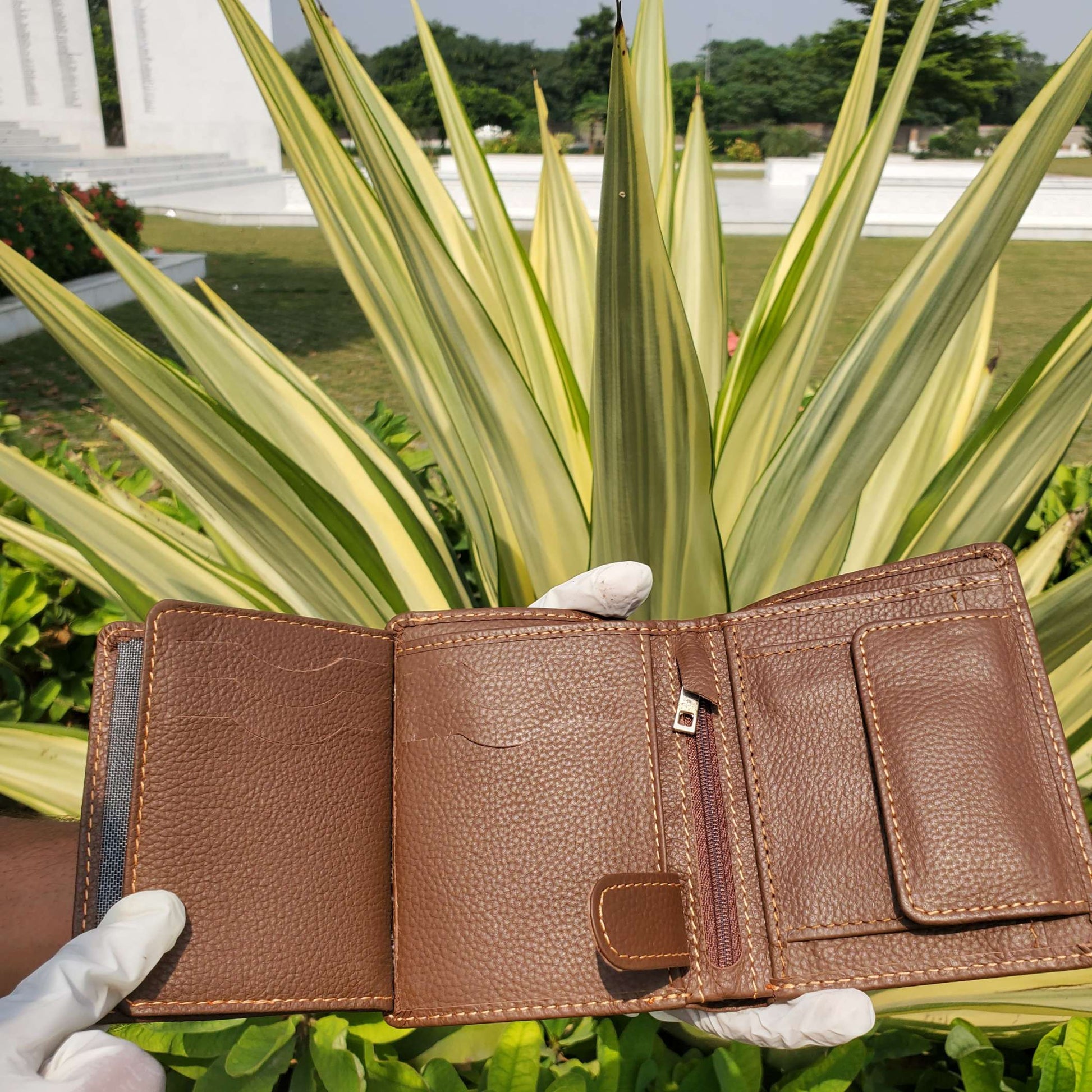 Upgrade your daily necessities with this elegant bi-fold wallet. Its sleek and contemporary design, which is made from premium leather, has clean lines and a sophisticated profile that fits easily into your pocket or bag. There is plenty room inside for all of your needs, including several card slots and a roomy bill drawer for cash. Soft fabric is used to line the wallet's interior, guaranteeing longevity and safeguarding your belongings. This wallet is the perfect companion for the discriminating person who appreciates order and elegance because it blends beauty and functionality, making it suitable for both formal and informal settings